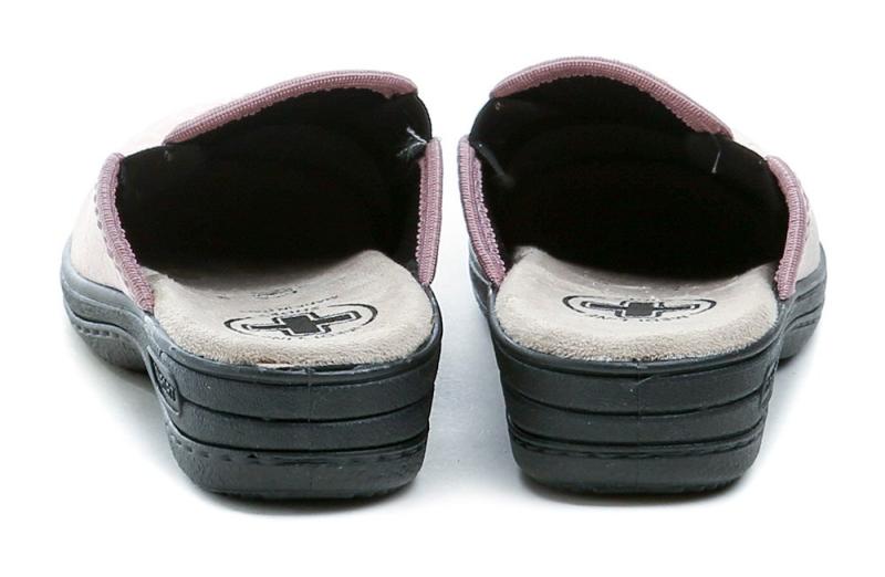 Ľahké zdravotné papuče s voľnou pätou a miernym klinom, vhodné na domáce použitie aj chodidlá s halluxmi, s pohodlnou stielkou z prírodnej kože.Táto dámska zdravotná obuv je navrhnutá pre celoročné nosenie s voľnou pätou a miernym klinom, ktorý zabezpečuje pohodlnú chôdzu a dostatočnú oporu.