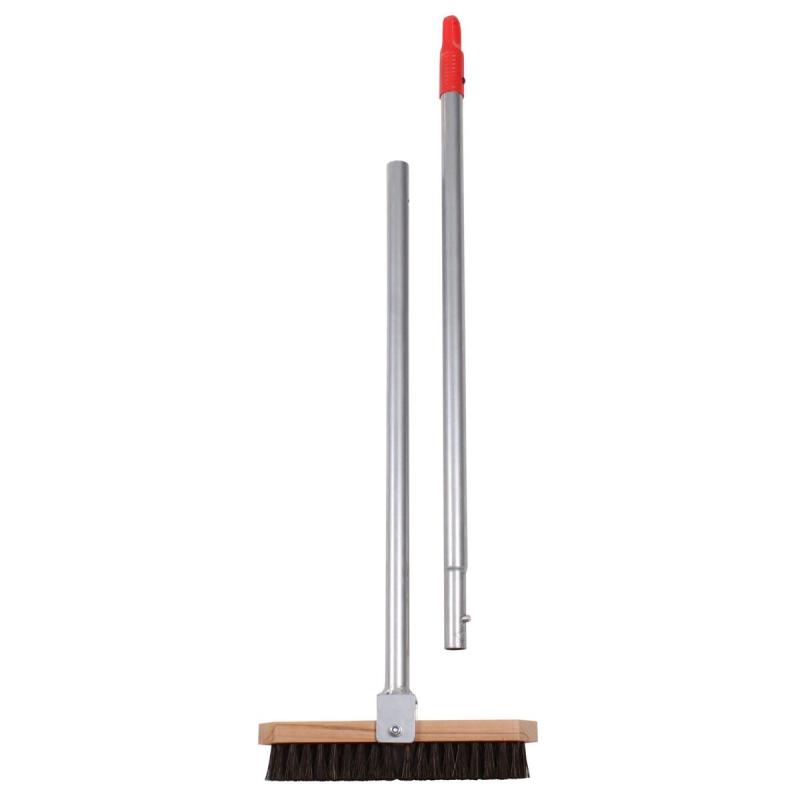 Dřevěná hlava kartáče má rozměry 28 x 4 cm, což odpovídá šířce lajny, pro kterou je určen, konkrétně lajny široké 4 a 5 cm. Délka hliníkové, dvoudílné skládací násady je přibližně 125 cm s průměrem 2,5 cm. Díky skládací konstrukci je násada skladnější než tradiční pevné dřevěné násady, což usnadňuje její přepravu a uskladnění.
