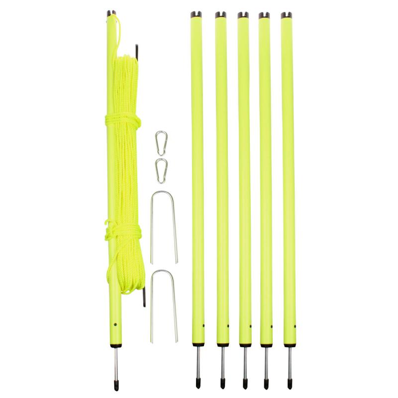 Praktický vytyčovací systém pro rychlé a stabilní vymezení prostoru venku, obsahuje tyče, lanko a příslušenství v přenosném vaku. Zobrazit celý popis