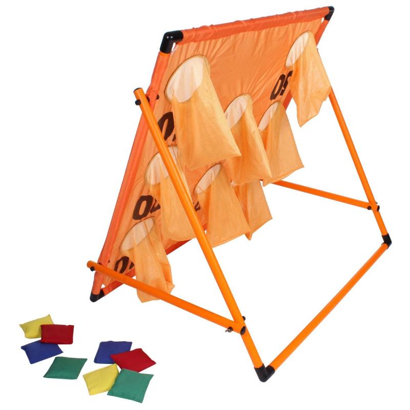 Celá sada obsahuje skládací terč vyrobený z polyesteru a lehké PVC konstrukce a barevnými sáčky, které jsou naplněné fazolkami či kuličkami. Hru můžete hrát sami a trénovat tak svou přesnost spodního hodu, nebo hrajte s přáteli a vytvořte si svou soutěž o to, kdo získá nejvíc bodů. Terč má po jednoduchém složení rozměry přibližně 90 x 93 x 72 cm a hmotnost necelých 1,5 kg. Díky tomu jej jednoduše kamkoliv přenesete. Pokud hledáte novou hru do školy, pro dětské kroužky nebo pro svou rodinu, Bean Target je to pravé!