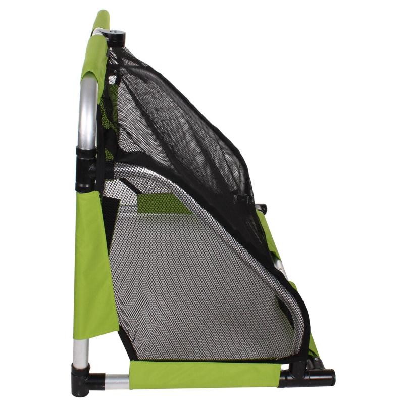 Konstrukce je vyrobena z lehkého hliníku, který zajišťuje dostatečnou pevnost a zároveň nízkou hmotnost okolo 7,8 kg. Díky tomu ji zvládnou bez problémů přenášet i mladší hráči. Polyesterová síť je připevněna pomocí suchých zipů, což umožňuje její snadné sundání a opětovné nasazení. Celkové rozměry branky jsou 120 x 80 x 65 cm (šířka x výška x hloubka), což ji řadí mezi menší modely vhodné pro tréninkové účely a rekreační hry.