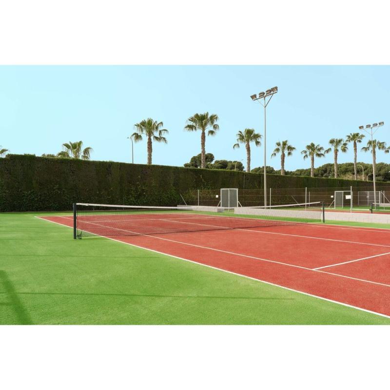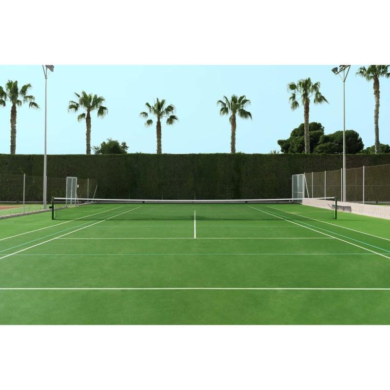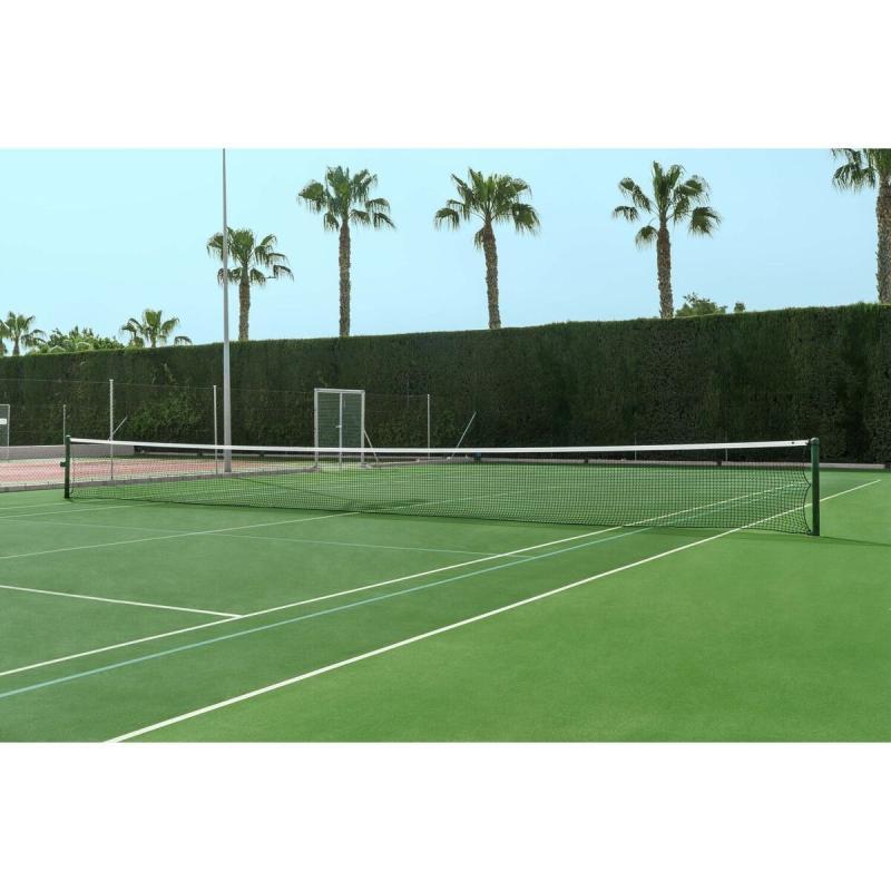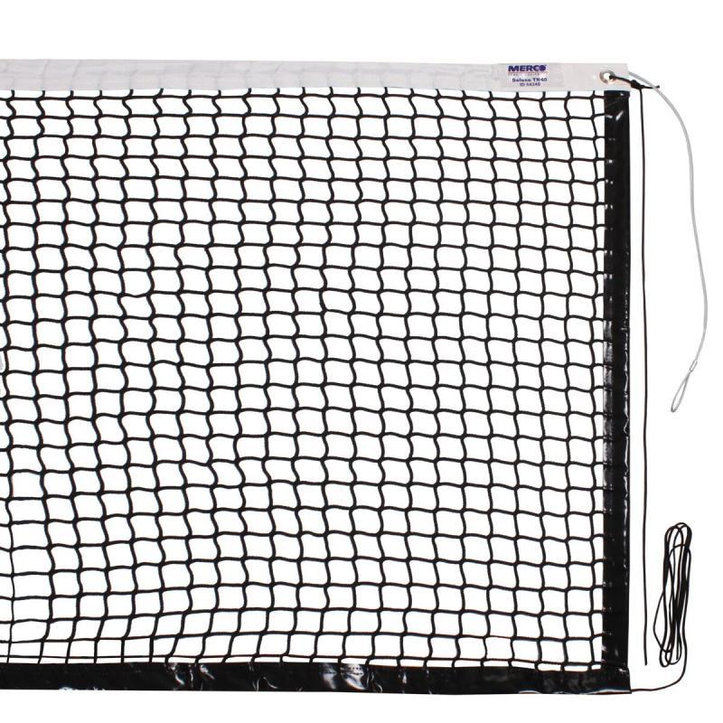 Tenisové sítě řady Merco jsou vyrobené od renomovaného evropského výrobce. Kvalitní síť na tenis Deluxe TN40 je vhodná pro tenisové kluby a pro hru na všech výkonnostních úrovních. Síť je vyrobená z vysoce pevného, bezuzlového polypropylenu, který je odolný proti UV a povětrnostním vlivům.Díky tomu je síť vhodná pro použití v hale i na venkovních kurtech. Má klasické rozměry 12,8 x 1,07 m, sílu 4 mm a velikost oka 35 mm. Horní bílá PES páska s výškou 55 mm přidává síti dlouhou životnost. Síť se napíná pomocí ocelového lanka. Tenisová síť Deluxe TN40 splňuje všechny požadavky normy EN 1510.