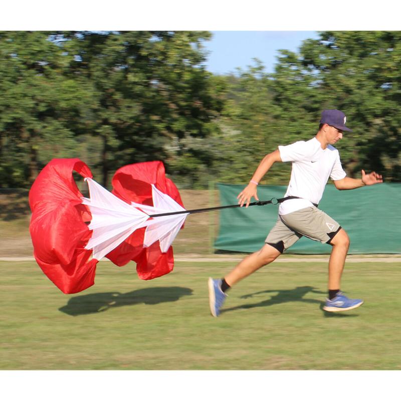 Balenie odporového padáka Merco Double Resistance obsahuje dva tieto padáky a ako tréningová pomôcka je ideálne pre všetkých športovcov, ktorí potrebujú až dvakrát rýchlejšie zlepšiť rýchlosť a silu spodnej polovice tela pomocou behu.