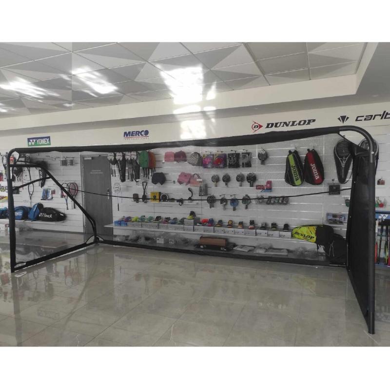 Síť tvoří polyesterová síťovina s vyztuženými PVC okraji. Tyto okraje k brance uchytíte díky suchým zipům. Tento model má navíc možnost namontování postranních koleček pro snadnější převážení. Branka má celkové rozměry 5 x 2 x 2 m a celkovou hmotnost přibližně 50 kg. Součástí jsou také "U" kotvy, které slouží pro upevnění branky do travnatého povrchu. Před použitím si přečtěte návod na použití, který lze stáhnout na našich stránkách.