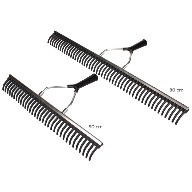Hrable určené na šetrné odstránenie opadaného lístia alebo odpadkov z tenisových kurtov. Vyrobené z kvalitnej gumy, ocele a PVC. Pri použití týchto hrablí nedochádza k narušeniu samotného povrchu ihriska a to tak zostane nepoškodené. Hrable ponúkame v dvoch šírkach (50 a 75 cm). Dodávané sú iba samostatné hrable bez násady.8591792215472102.85
