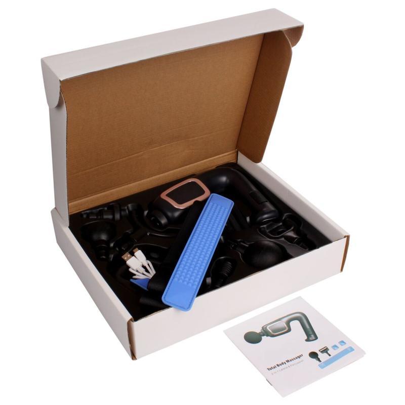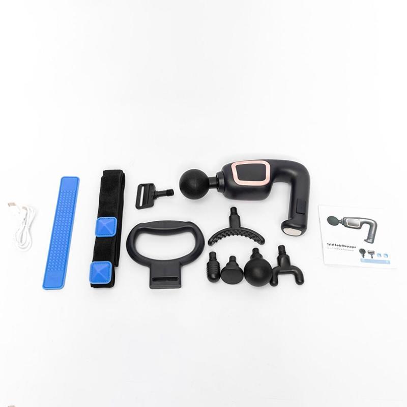 - sada: masážní pistole, nastavitelný pás, 7 různých nástavců, nabíjecí USB kabel