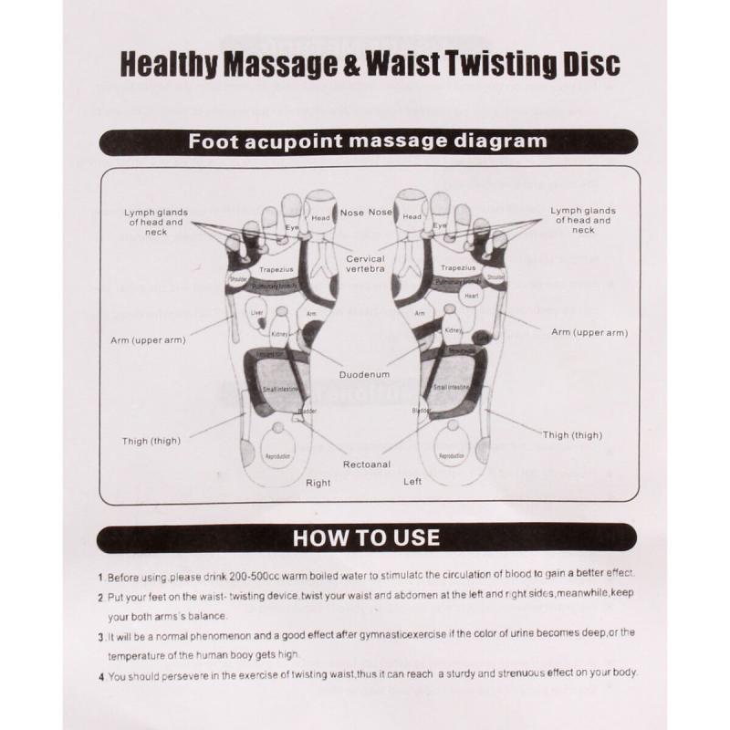 Snažíte se točit boky z levé strany na pravou. Nejenže cvičíte, ale i příjemně vám disk masíruje a prokrvuje dolní končetiny. Procvičíte hýžďové, stehenní a břišní svaly. Rotační disk o rozměrech 27 x 27 x 3 cm je vyrobený z PVC materiálu a je vhodný pro všechny věkové i výkonnostní kategorie.