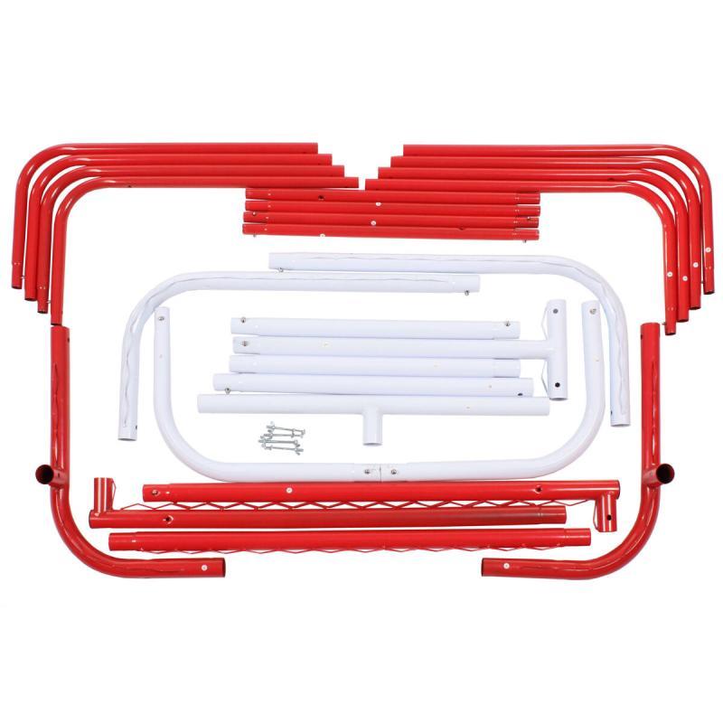 Skládací hokejová branka s ocelovou konstrukcí a záchytnými sítěmi umožňuje efektivní trénink přesnosti střelby bez ztráty puků.