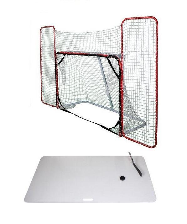 Set produktů za zvýhodněnou cenu. Skládací hokejová branka s ocelovou konstrukcí a záchytnými sítěmi umožňuje efektivní trénink přesnosti střelby bez ztráty puků.
