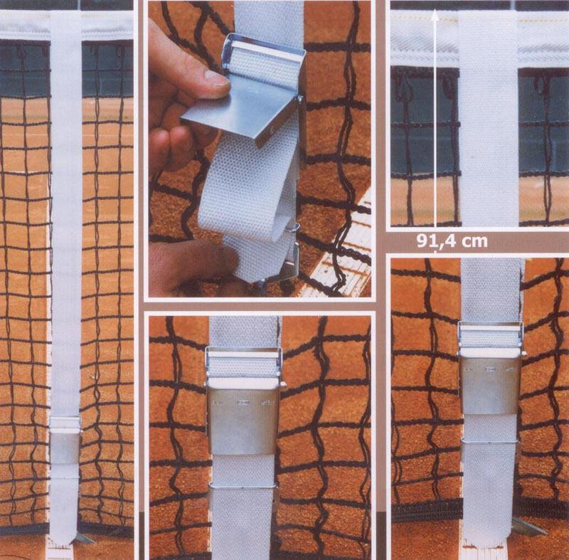 Středová páska Tenis Exacta Vám pomůže jednoduše a rychle nastavit správnou výšku tenisové sítě. Instrukce: Pro správnou výšku sítě 91.4 cm nastavte popruh tak, aby značící bod ležel na kraji sítě a konec popruhu, aby se dotýkal země. Pás provlékněte skrz přezku.8591792209662435