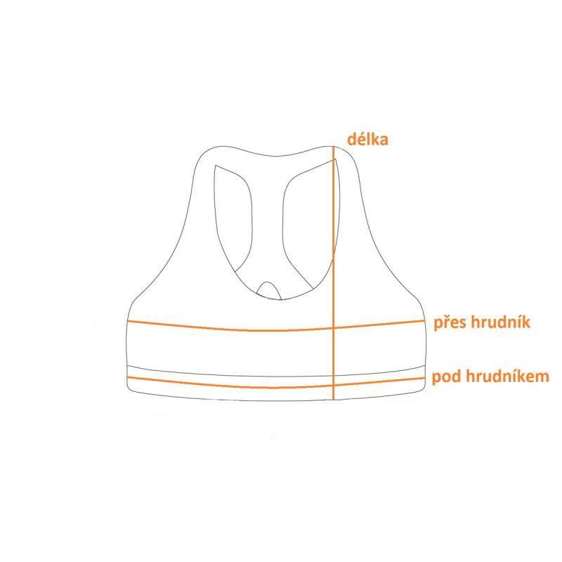 Podprsenka přes hrudník: 40 cm, pod hrudníkem: 34 cm, délka: 37 cm