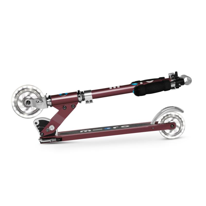 Detská skladacia kolobežka Sprite Autumn Red s LED kolieskami. Je v červenej jesennej metalickej farbe a ponúka dobre ovládateľnú, ľahkú a bezpečnú konštrukciu s nízko posadenou doskou pre jednoduchý odraz. Zobrazit celý popis