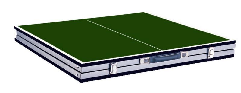 Vnitřní stůl na stolní tenis s pevnou 12mm deskou a železným rámem. Skládací konstrukce usnadňuje přenos a skladování, včetně síťky, pálek a míčků. Zobrazit celý popis