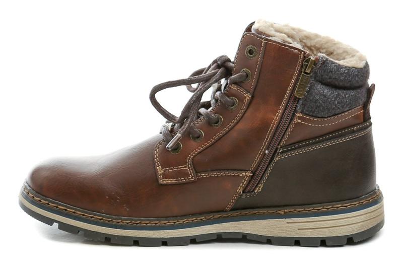 Pánské zimní kotníčkové boty s membránou MustangTEX, zateplené chlupatým textilním kožíškem, vhodné pro běžné nošení v chladném počasí.Pánská zimní kotníčková obuv nabízí pohodlí a ochranu během chladných dnů díky kombinaci šněrování a praktického zapínání na zip, které usnadňuje obouvání.