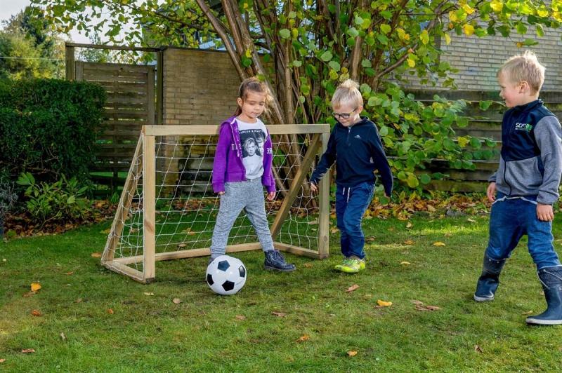 Fotbalová branka je vhodná na malou zahradu, jelikož při šířce 125 cm nezabírá mnoho místa. Lze ji používat venku po celý rok, je stabilní a odolná. Branka má hoblované a zaoblené hrany, takže se nemusíte obávat třísek. Spolu s brankou jsou dodávány šrouby a svorky z nerezové oceli a síť. Fotbalovou branku není nutné upevňovat k zemi.• velikost: 125 x 100 x 60 cm
