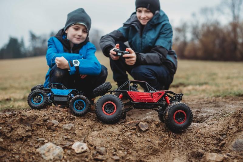 S Graviti senzorem v hodinkách. Kovová karoserie Odolný proti stříkající vodě, silný akumulátor, pohon 4x4. Zobrazit celý popis