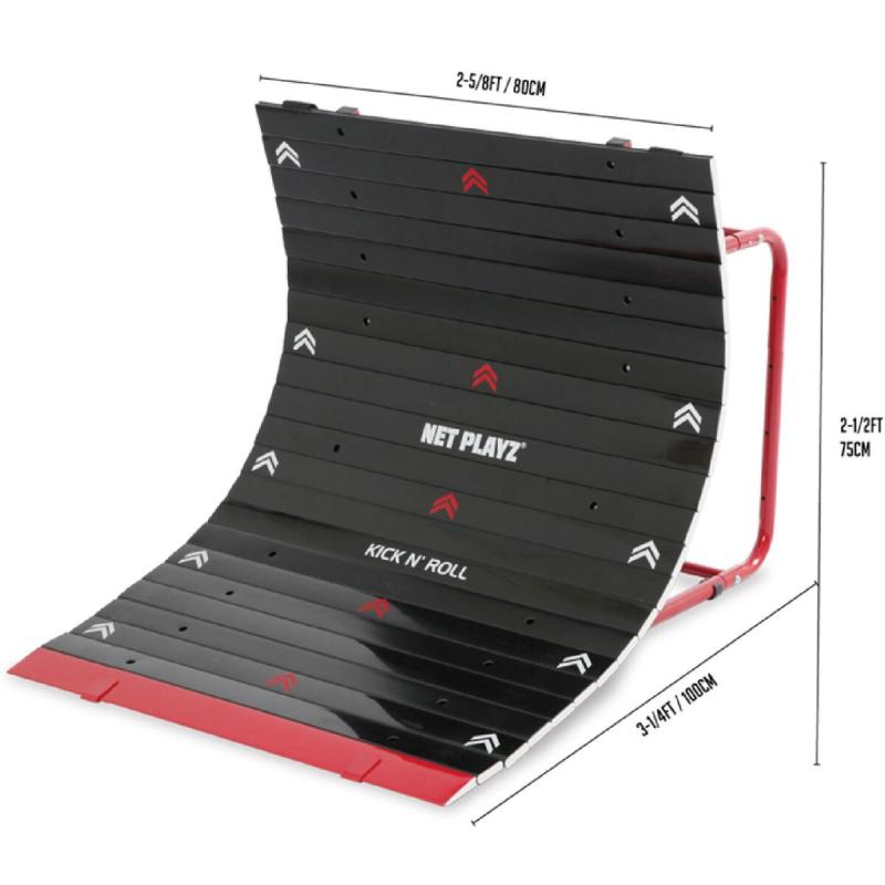 Futbalový trenažér Kick And Roll značky NET PLAYZ je navrhnutý vo forme rampy, ktorá poskytuje autentický odskok a pomáha hráčom trénovať spracovanie lopty a prihrávky na jeden dotyk.S touto futbalovou rampou si môžete vytvoriť individuálny tréning na záhrade alebo môžete trénovať s celým tímom na ihrisku. Skladací zosilnený oceľový rám dodáva extra stabilitu a pevná rampa je odolná aj proti tvrdším strelám. Je to skvelá pomôcka pre futbalistov všetkých výkonnostných úrovní. Zlepšujte svoje futbalové zručnosti a posuňte sa na ďalšiu úroveň s futbalovým trenažérom Kick N Roll!