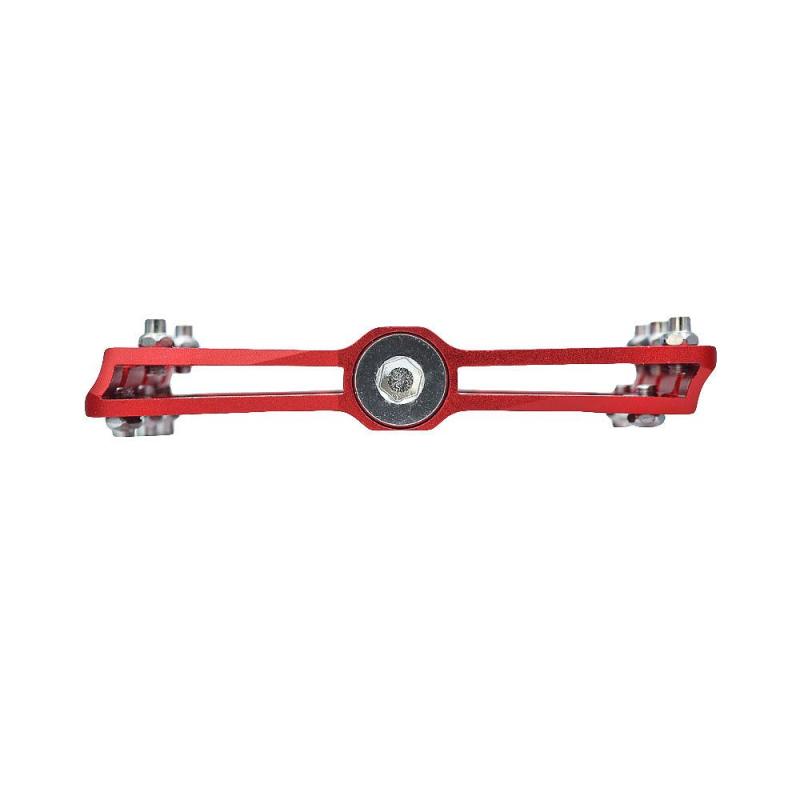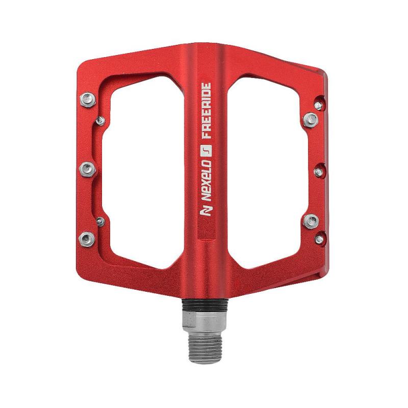 Červené platformové pedály z hliníku s průmyslovými ložisky a vyměnitelnými piny pro lepší přilnavost a odolnost při jízdě. zobrazit celý popis
