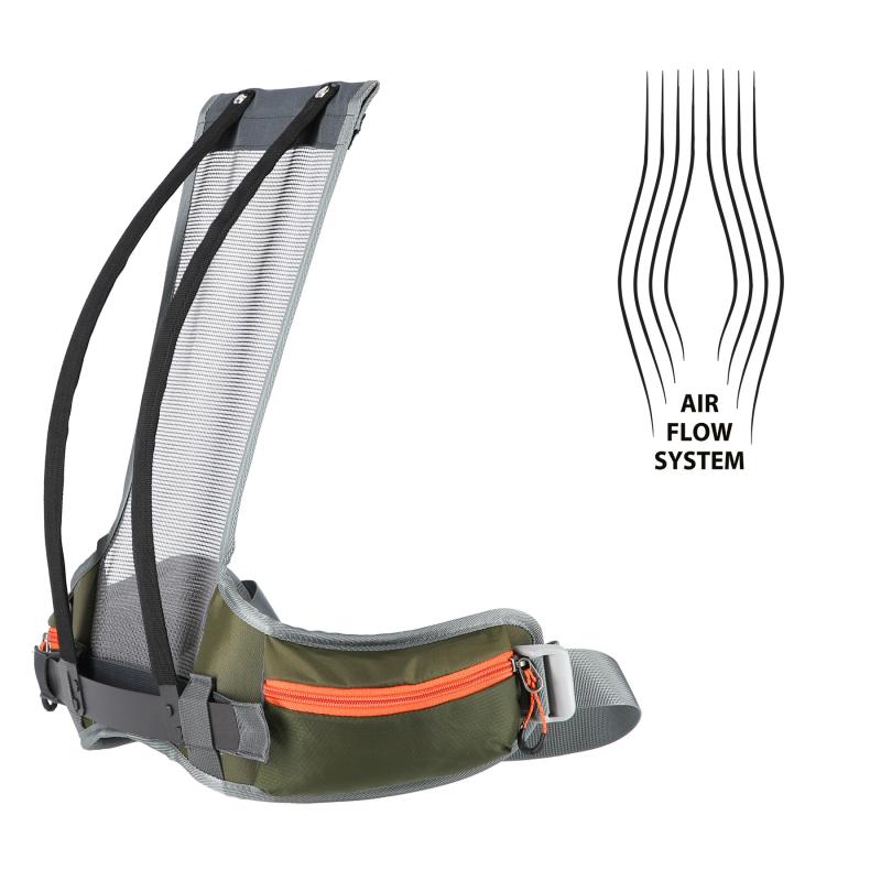 Jedinečný ventilačný systém oddeľuje hlavnú komoru od chrbtovej časti a zabezpečuje cirkuláciu vzduchu a pohodlie aj v tom najteplejšom počasí. Celá váha batohu navyše spočíva na profilovanom ráme, ktorý znižuje tlak na chrbticu a zvyšuje pohodlie pri dlhých horských výletoch. Panel je spojený s bedrovým popruhom a je možné ho ľahko vybrať, čím sa z turistického batohu stane batoh mestský.
