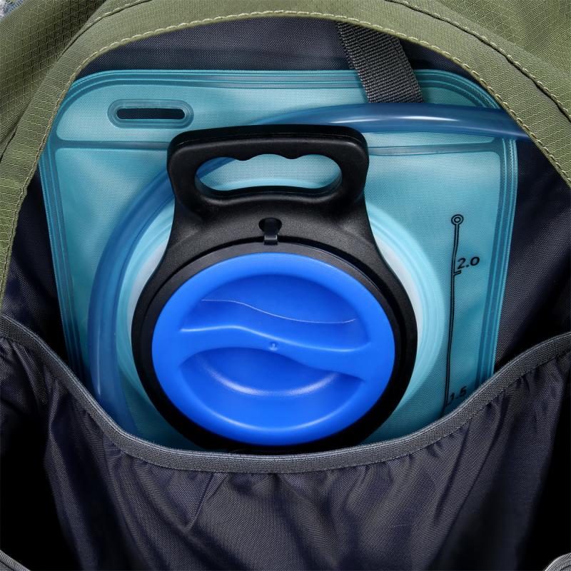 Hlavná komora na dvojcestný zips je vybavená kapsou na hydrovak, ktorý je možné zavesiť na remienok so suchým zipsom. Druhá, menšia komora je tiež vybavená dvojcestným zipsom a vo vnútri sa nachádzajú 2 sieťované vrecká na drobnosti. Predný panel tvorí rozmerná kapsa, do ktorej sa pristupuje 15 cm dlhým, jednocestným zipsom z pravej strany. Po stranách batohu sú sieťované vrecká s gumou v leme, nad vreckami sa nachádzajú dĺžkovo nastaviteľné popruhy s prackou, pod ktoré je možné umiestniť napríklad vyššiu fľašu. Na bedrovom páse sú 2 vrecká na zips, do ktorých sa zmestia napríklad kľúče alebo multitool. Z čela batohu sa nachádzajú 2 gumené pútka a 2 slučky na prenášanie turistických palíc.