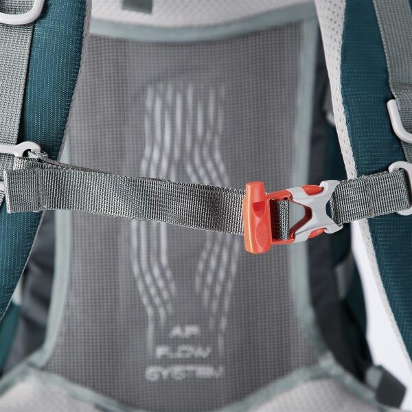 Hlavní komora na dvoucestný zip je opatřena kapsou na hydrovak, který lze zavěsit na řemínek se suchým zipem. Druhá, menší komora je také opatřena dvoucestným zipem a uvnitř se nachází 2 kapsy na drobnosti a 3 poutka například pro umístění svítilny. V horní části předního panelu se nachází menší kapsa, do které se přistupuje jednocestným zipem. Po stranách batohu jsou síťované kapsy s gumičkou v lemu, nad kapsami se nachází délkově nastavitelné popruhy s přezkou, pod které lze umístit například vyšší láhev. Z čela batohu se nachází 2 gumová poutka a 2 smyčky pro přenášení turistických holí, 4 poutka pro zavěšení například kempingového vybavení a poutko pro připevnění blikačky pro zvýšení viditelnosti za šera.