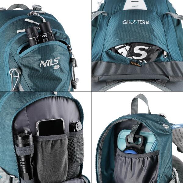 Model Ghoster má polstrované ramenní popruhy, které je možné sepnout výškově nastavitelným hrudním řemínkem s plastovou přezkou a bederní popruh, který pomáhá rovnoměrně rozložit hmotnost batohu i při intenzivních aktivitách. Mezi ramenními popruhy se nachází poutko pro přenášení batohu v ruce. Kromě toho má batoh Ghoster samostatnou kapsu na hydrovak (není součástí balení), četné kapsy a přihrádky, které umožňují intuitivní uspořádání obsahu. To nejen zvyšuje organizovanost, ale také poskytuje snadný přístup ke všem potřebným věcem, aniž byste museli prohledávat celý batoh.