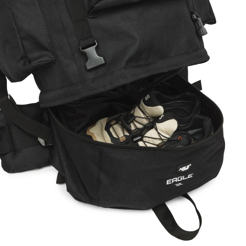 Hlavní komora batohu nabízí velmi velký objem, ale právě četné menší kapsy jsou tím, co dělá batoh NC3901 Eagle tak praktickým. Rozsáhlý úložný systém umožňuje pohodlně uspořádat veškerou výbavu - nezbytné příslušenství, nářadí, lékárničku nebo náhradní baterie můžete uložit na snadno přístupná místa, aniž byste se museli přehrabovat v celém obsahu batohu. Samostatná kapsa na boty navíc oddělí špinavé boty od zbytku zavazadla a udržuje tak vnitřek batohu v čistotě.