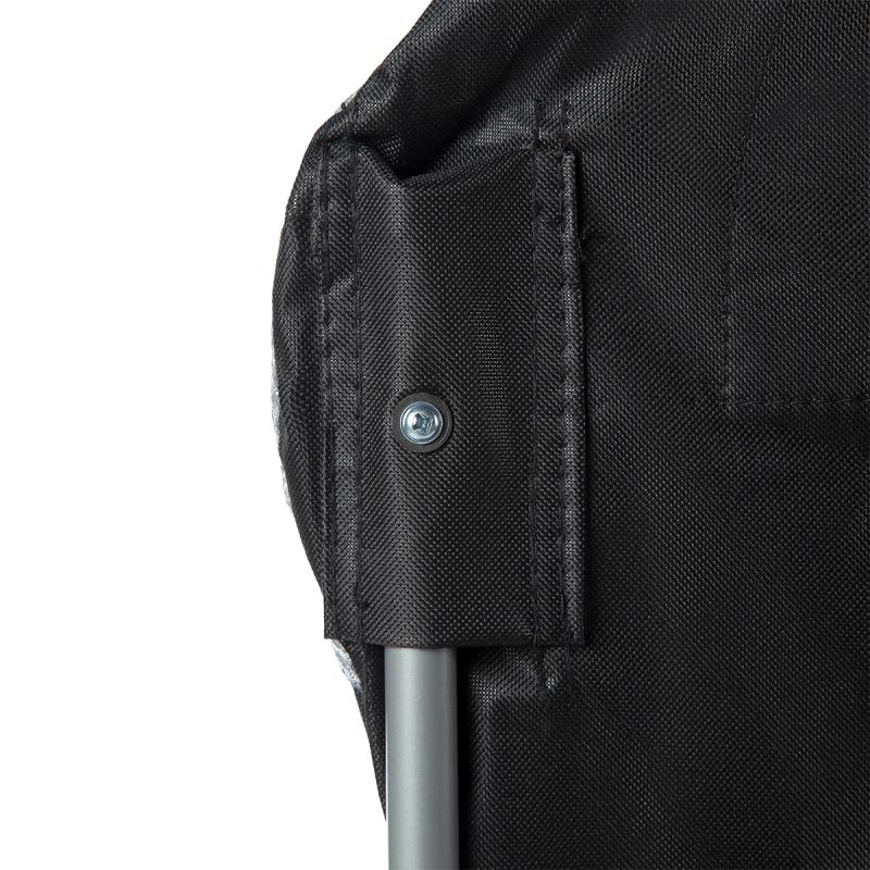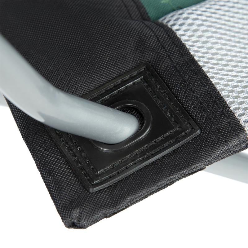 Jedná se o univerzální křeslo, které obstojí v jakýchkoliv podmínkách a terénech. Za jeho stabilitu odpovídají pevné ocelové profily o průměru 16 mm. Díky robustní konstrukci a polyesteru v úpravě 600D Oxford, který je velmi odolný, má křeslo nosnost až 130 kg. Doplněním jsou protiskluzové nožky, které zabraňují posouvání.
