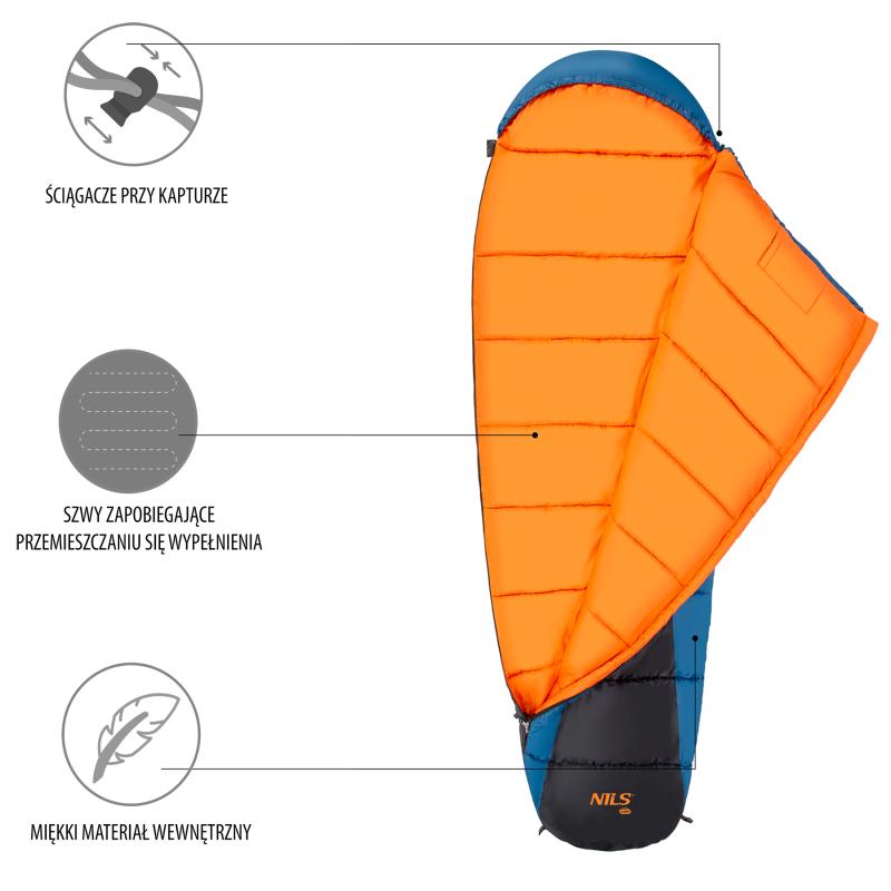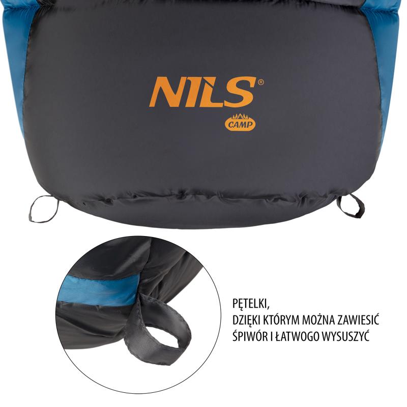 Spací vak, typu múmia, NILS Camp NC2012 využijete počas chladných nocí pri kempovaní, spaní pod holým nebom alebo len pri stanovaní na záhrade.