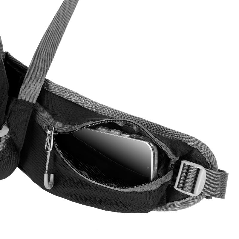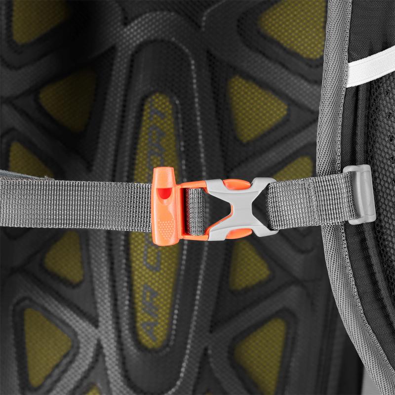 Na přezce hrudního popruhu je integrovaná záchranná píšťalka pro zvýšení bezpečnosti v případě nouze. Bederní pás nejen rovnoměrně rozkládá hmotnost, ale také stabilizuje batoh a navíc nabízí kapsy na drobnosti, jako je svačina, klíče nebo telefon.