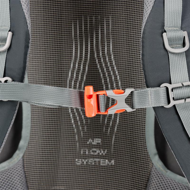 Pokročilý Air Flow System odděluje zadní část batohu od zad uživatele a zajišťuje nepřetržité proudění vzduchu. Tím výrazně omezuje pocení a zvyšuje pohodlí, zejména během teplých dnů nebo náročných výšlapů.Součástí konstrukce je také odnímatelný rám, který pomáhá rozložit hmotnost a snižuje tlak na páteř. Rám lze snadno vyjmout například při čištění batohu.