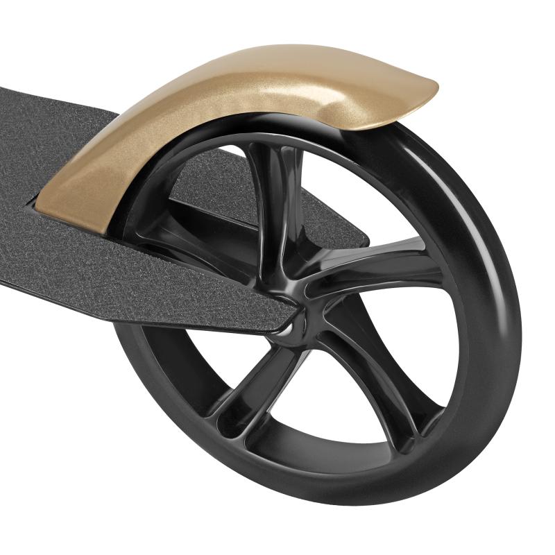 Veľké kolesá s priemerom 200 mm sú vyrobené z odolného polyuretánu (PU) a sú osadené ložiskami ABEC 7, táto kombinácia zabezpečuje plynulú jazdu na mestských chodníkoch a cestách. Ideálna tvrdosť a flexibilita kolies zaručuje stabilitu aj dynamiku pohybu – bez ohľadu na to, či idete po asfalte alebo dlažbe.