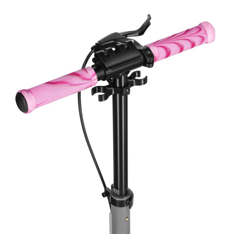 Pevný rám z kombinácie ocele a hliníka garantuje bezpečnosť a dlhú životnosť, pričom si kolobežka zachováva nízku hmotnosť. Výškovo nastaviteľné riadidlá v rozsahu 86–101 cm umožňujú jednoduché prispôsobenie výške jazdca.\nDvojitý brzdový systém pre maximálnu kontrolu