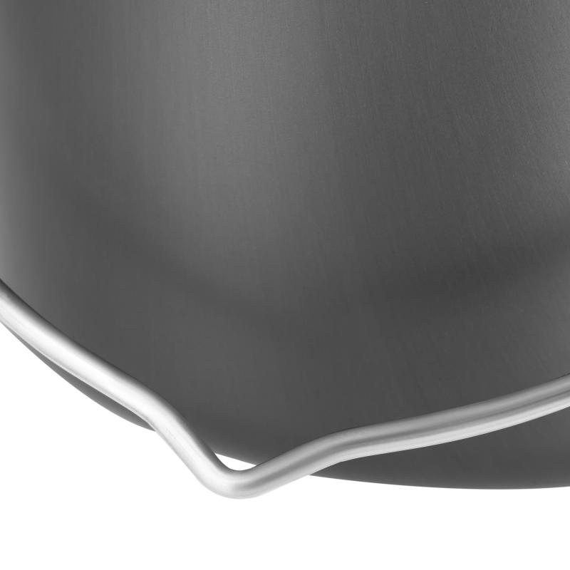 Hrniec je vyrobený z kombinácie hliníka, nehrdzavejúcej ocele a ABS plastu, čo mu zabezpečuje vynikajúcu odolnosť proti poškodeniu, rýchle zahrievanie a ľahké čistenie. Nádoba z hliníka efektívne vedie teplo od plameňa, oceľové ucho zaručuje pevnosť pri prenášaní plného hrnca a pokrievka je opatrená držadlom z ABS plastu odolného voči vysokým teplotám.