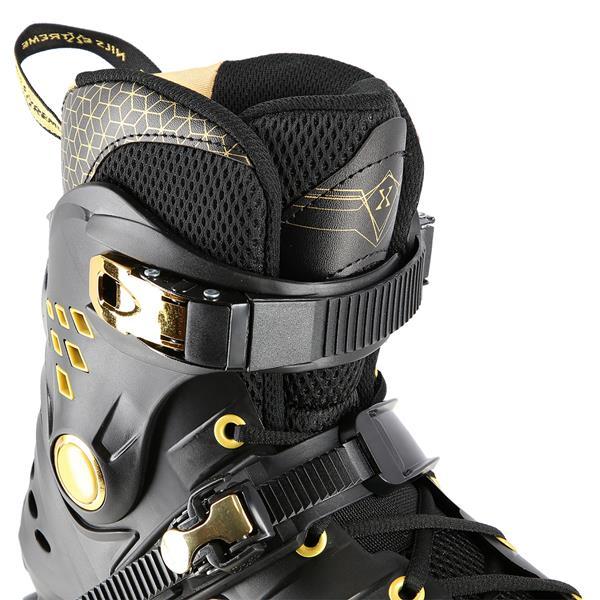 NILS Extreme NA20006 sú freeridové korčule určené pre stredne pokročilých a pokročilých korčuliarov. Dizajn korčule sa opiera o kombináciu čiernej a zlatej farby, tvrdá topánka je v úrovni päty a stredu chodidla vybavená veľkými otvormi pre dostatočnú ventiláciu, takže sa noha v korčuli nebude nadmerne potiť. Vysoký jazdný komfort zaručuje vnútorná topánka vyrobená z kombinácie EVA peny, sieťoviny Mesh a semišu. Zobrazit celý popis