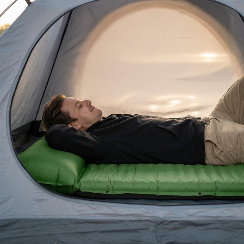 Karimatka nevyžaduje žádné pumpování – stačí otevřít ventil a nechat ji samovolně nafouknout. Po dosažení požadované tuhosti ventil jednoduše uzavřete a karimatka je připravena k použití.Prostorná pro dvě osoby