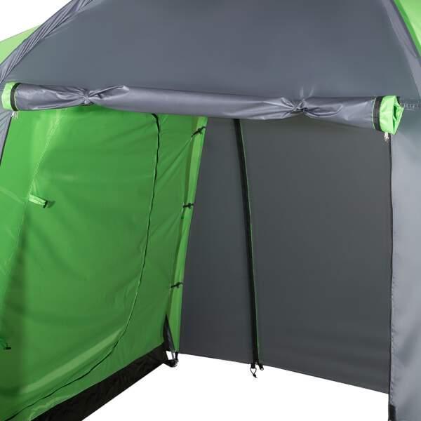 Highland ponúka dve samostatné spálne, každú pre tri osoby, a veľkú predsieň o rozmeroch 210 × 210 × 200 cm. To je dostatok priestoru na pohodlný pobyt vo vnútri stanu – či už odpočívate, alebo sa schovávate pred dažďom.