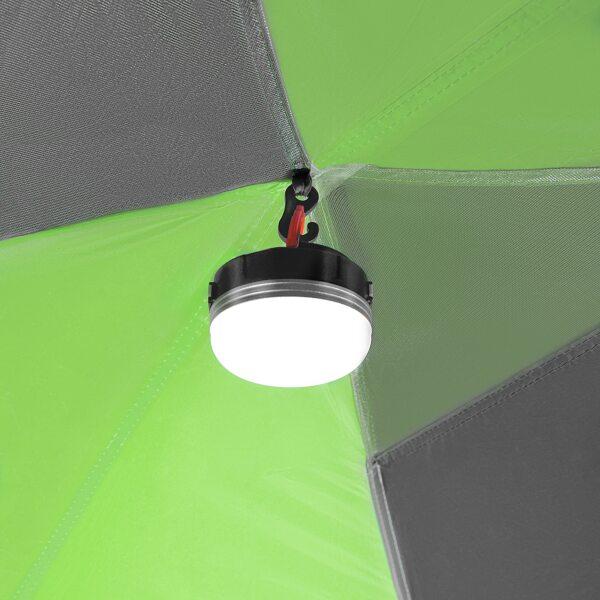 Navíc je stan vybaven čtyřmi vnitřními kapsami, kam schováte své věci, a dvěma úchyty pod stropem, díky kterým můžete zavěsit lampu.