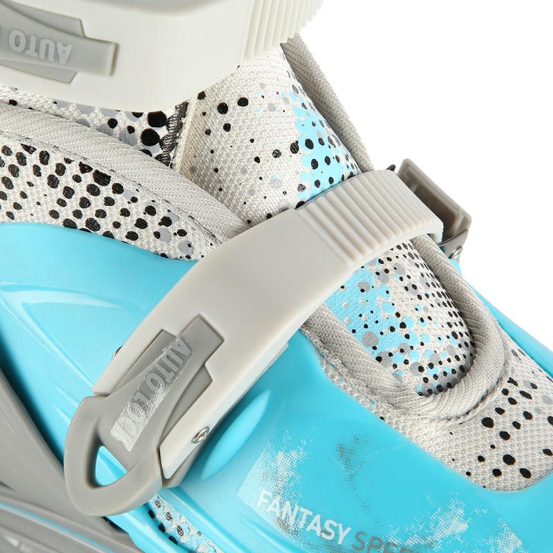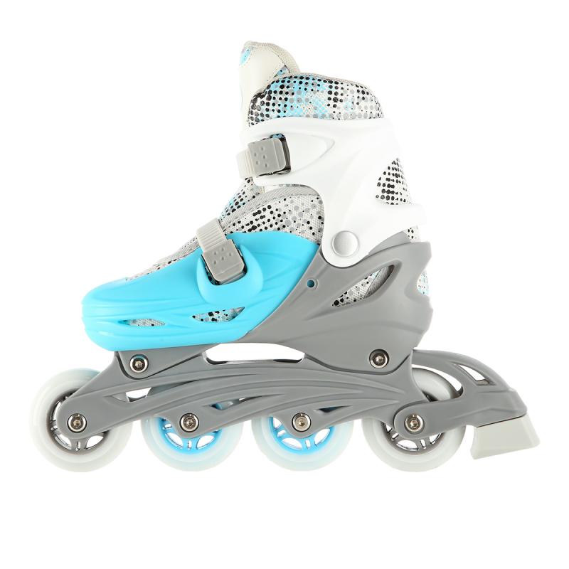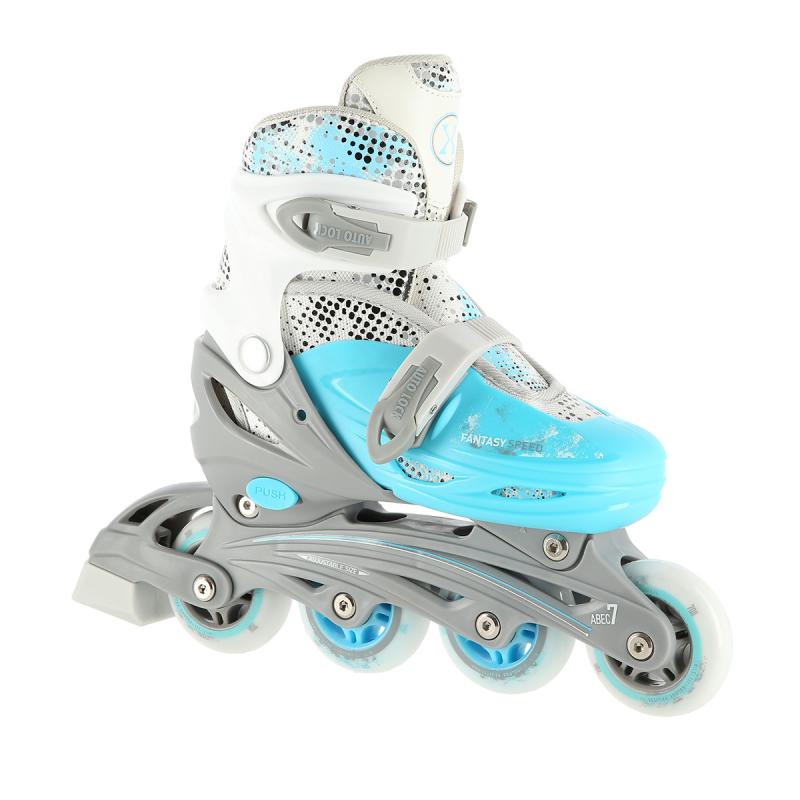 Plastový podvozek je osazen měkkými PU kolečky s ložisky ABEC7 pro svižnou jízdu. Vnější bota je pomocí stisku tlačítka nastavitelná do čtyř velikostí, toto řešení umožňuje precizní přizpůsobení velikosti podle aktuálních potřeb anebo se používá jako "rostoucí bota", která "roste" spolu s nohou dítěte.