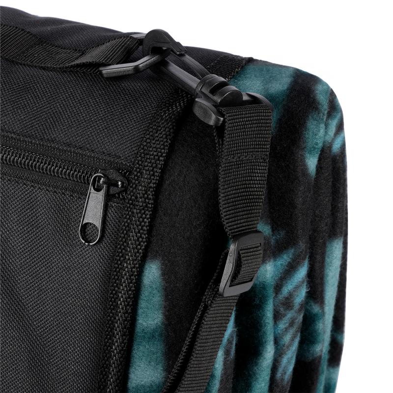 Deku je možné ľahko zložiť do praktickej "tašky". Klopa so suchým zipsom zabraňuje jej náhodnému rozbaleniu a nastaviteľný popruh cez rameno a madlo umožňujú deku pohodlne prenášať.