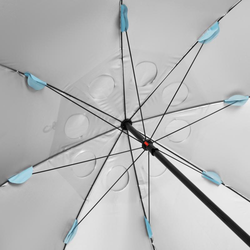 Slunečník je vybaven odnímatelnou podlahou o rozměrech 250 x 140 cm, která zajišťuje další komfort při používání. Ideálně izoluje od písku nebo vlhkého povrchu a vytváří čistý a bezpečný prostor pro odpočinek, hraní dětí nebo uložení věcí. V případě potřeby lze podlahu snadno odpojit – slunečník se pak stane klasickým stínidlem.