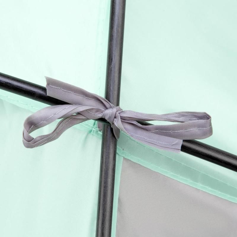 Stan je dodáván složený v tašce opatřené uchem pro snadné přenášení. Po vytažení z tašky se stan postaví za pomoci tří sklo-laminátových tyčí, které se provléknou tunely na polyesterovém tropicu. Podlaha o rozměrech 105 x 210 cm a výška 110 cm umožňují úkryt před sluncem jak dětem, tak rodičům. Použitý materiál odolá i malé, dešťové přeháňce.