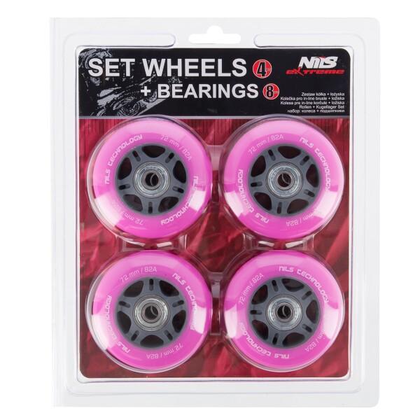 NILS PU kolečka s ložisky 72x24mm ABEC 7 růžové
