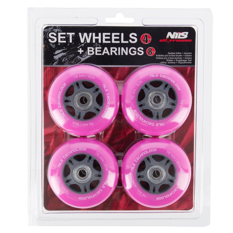 Nils PU kolečka s ložisky EXTREME 76x24mm ABEC 7 růžové