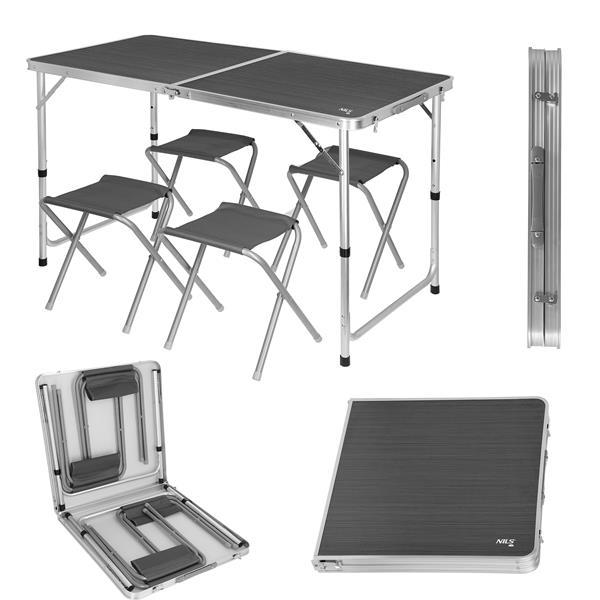 Nils Sada skladacieho kempingového stola a stoličiek Camp NC1633 tmavo sivá