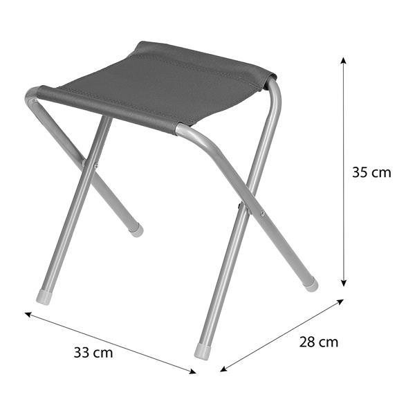 Štyri stoličky majú hliníkový rám a sedáky z odolného polyesteru. Po rozložení má každá stolička výšku 35 cm a plocha sedáku je 27 x 25 cm. Po zložení sa stoličky pohodlne uložia dovnútra zloženého stola (kufríka), čo šetrí miesto a robí z celej sady veľmi kompaktný celok.