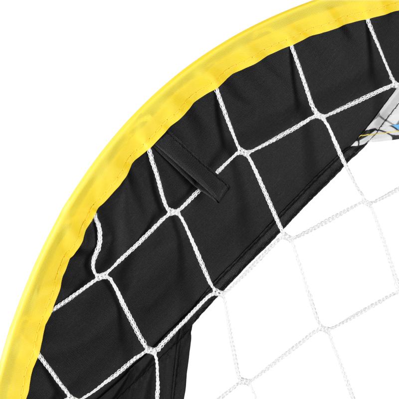 Bránka je vyrobená z kvalitných materiálov. Konštrukcia stojí na flexibilných, ale zároveň odolných prútikoch zo sklolaminátu, čo zabezpečuje trvácnosť a odolnosť proti deformáciám. Sieť z polyesteru garantuje odolnosť proti pretrhnutiu a vplyvom počasia. Navyše sú súčasťou sady tri kovové kolíky pre pevné upevnenie bránky k zemi, aj pri silnejšom vetre alebo intenzívnej hre.