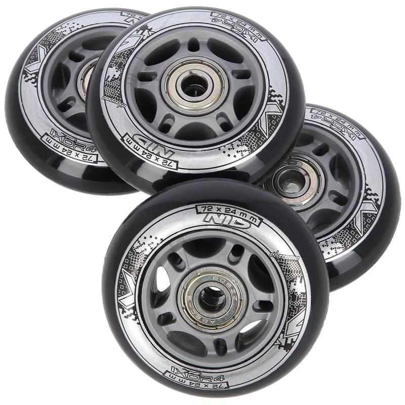 Nils Sestava černých PU koleček 72x24 + ložiska ABEC9 EXTREME