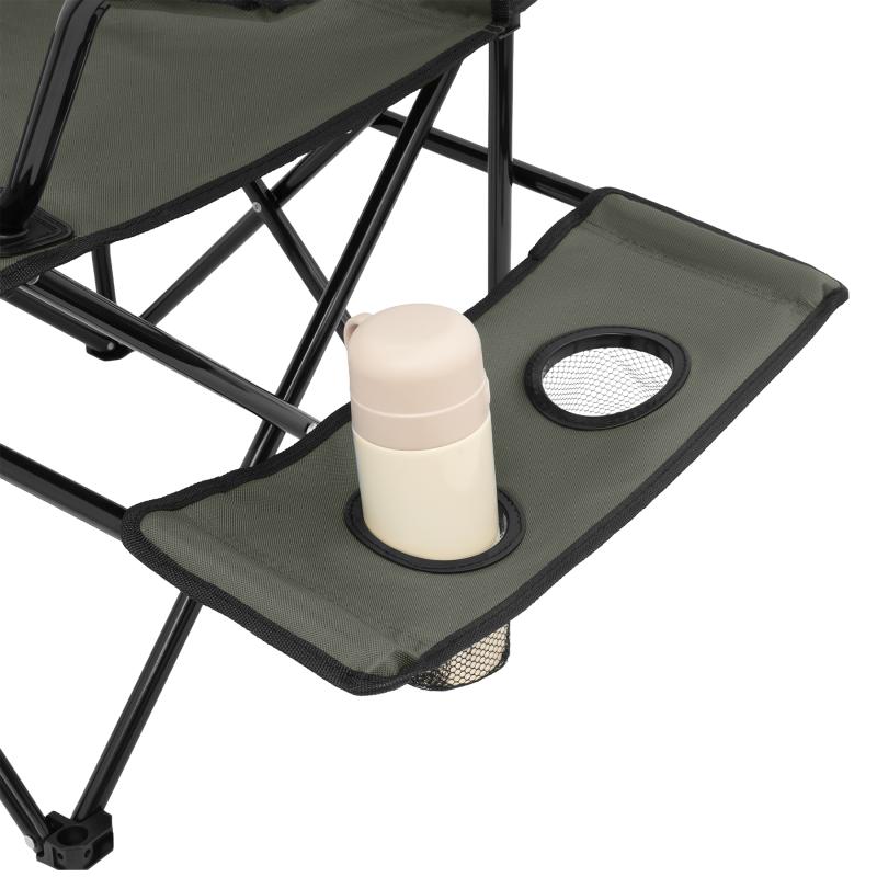 NILS Camp NC3301 je turistická židle doplněná o boční držák nápojů. Její konstrukce zajišťují komfortní odpočinek bez ohledu na místo – ať už jde o dovolenou v kempu, piknik v parku a nebo posezení s přáteli na zahradě. Sedák a opěradlo jsou vyrobeny z odolného polyesteru 600D s PE zátěrem, odolného proti oděru a vlhkosti. Černý lem zajišťuje čistý vzhled a celou židli drží stabilní ocelový rám s černým práškovým lakem.