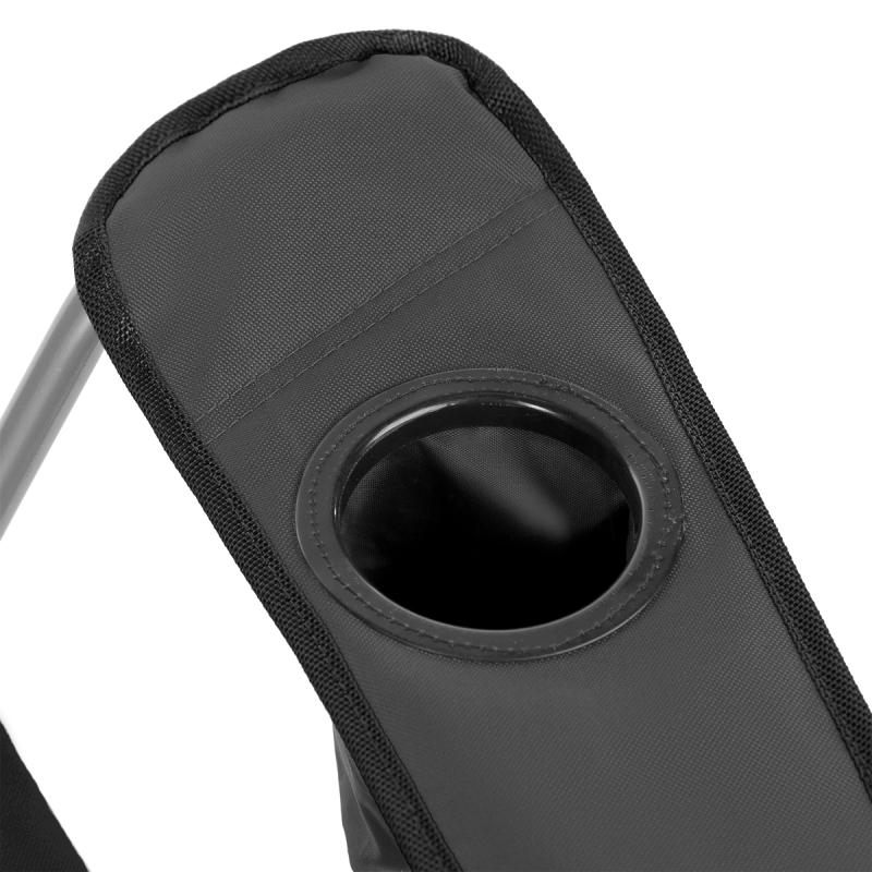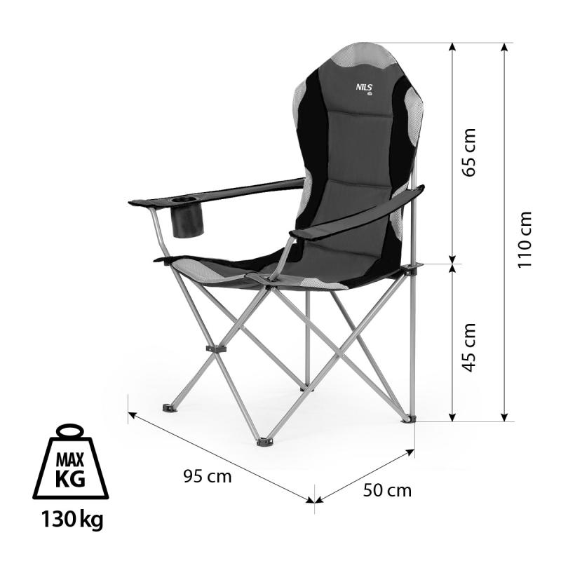 Jedná se o univerzální křeslo, které obstojí v jakýchkoliv podmínkách a terénech. Za jeho stabilitu odpovídají pevné ocelové profily o průměru 16 mm. Díky robustní konstrukci a polyesteru v úpravě 600D Oxford, který je velmi odolný, má křeslo nosnost až 130 kg. Doplněním jsou protiskluzové nožky, které zabraňují posouvání.